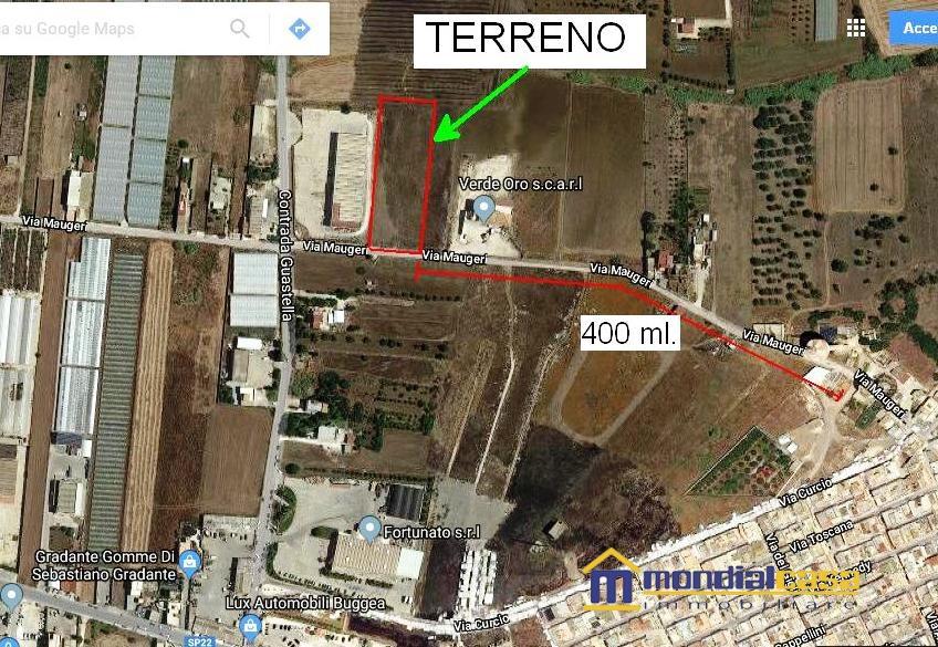 Nella periferia dell´abitato (ad appena qualche centinaio di metri) nella via Maugeri, in un contesto sia residenziale, che Commerciale, bellissimo stacco di terreno agricolo con ampio prospetto su strada asfaltata (circa 45 ml.) il terreno data la posizione è ideale per la costruzione di una casa da destinare ad abitazione o/e per la costruzione di un magazzino fino a 285 mq. circa. Ottimo Affare !!!