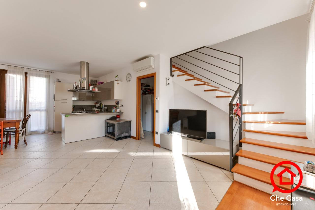 Al piano terra si sviluppa un luminoso ambiente soggiorno/pranzo openspace con angolo cottura, oltre a un disimpegno e un bagno di servizio.