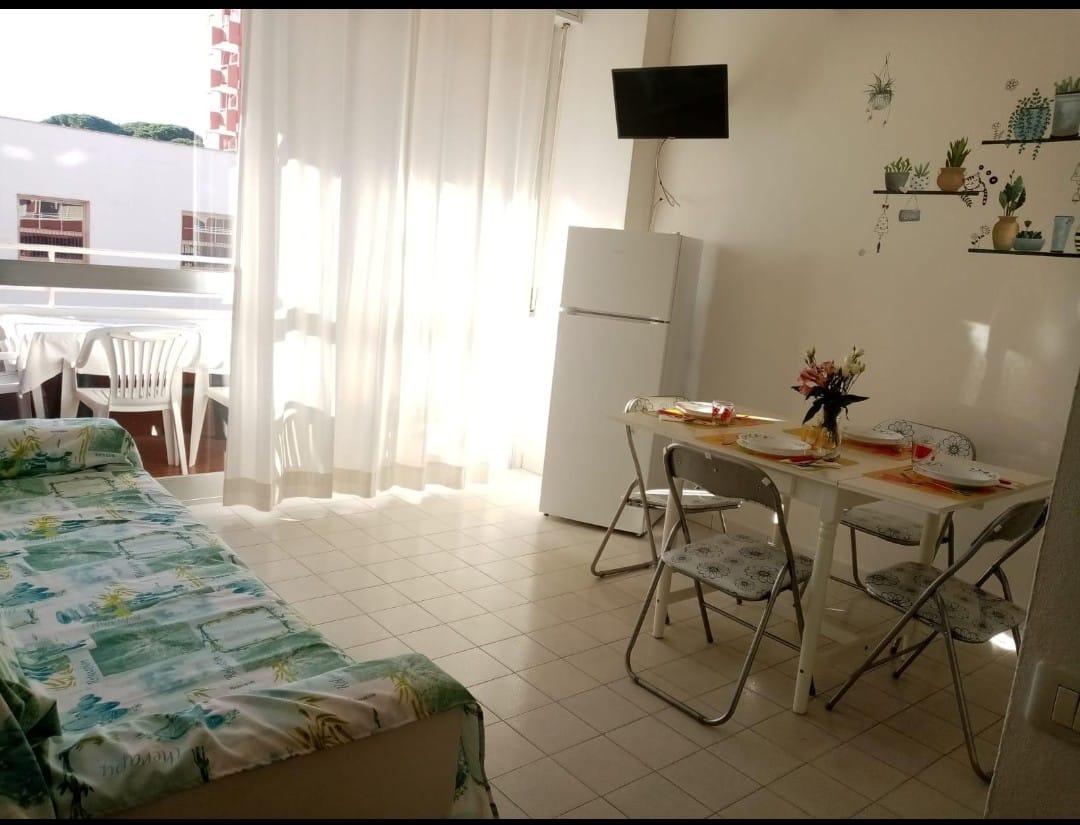Piccolo appartamento nella zona nuova, vicino a tutti i servizi, alla pineta e a pochi passi dal mare. Al primo piano di condominio con ascensore. Composto da soggiorno con angolo cottura e divano letto, cameretta con letto a castello, e bagno. Terrazza con tavolo e sedie dove poter mangiare.