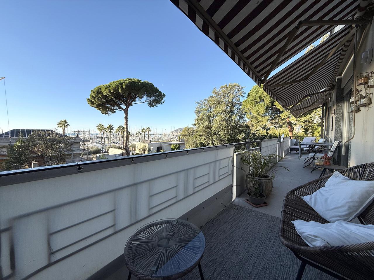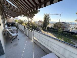 Elegante appartamento quadrilocale a Sanremo in posizione invidiabile, di fronte a Portosole e alla pista ciclabile, al secondo piano di palazzina di soli tre piani, servita da strada privata adiacente al parco di Villa Nobel, ma raggiungibile anche dalla Via Vesco. Questo quadrilocale a Sanremo misura circa 125 mq. ed è composto da ingresso nel corridoio, che serve tutte le stanze ed è fornito di comodissimi armadi a muro; il salone doppio, luminoso e molto ben finestrato, si affaccia sul terrazzo in tutta la sua lunghezza, e ci regala ampi scorci sul mare e sul Portosole con vista aperta fino a Capo Nero. Vi sono poi due belle camere matrimoniali, una con vista mare e l´altra con vista sul parco di Villa Nobel: abbiamo poi un´altra cameretta ad uso studio, due bagni finestrati con doccia e la cucina abitabile che si affaccia su un balcone ad uso servizio.