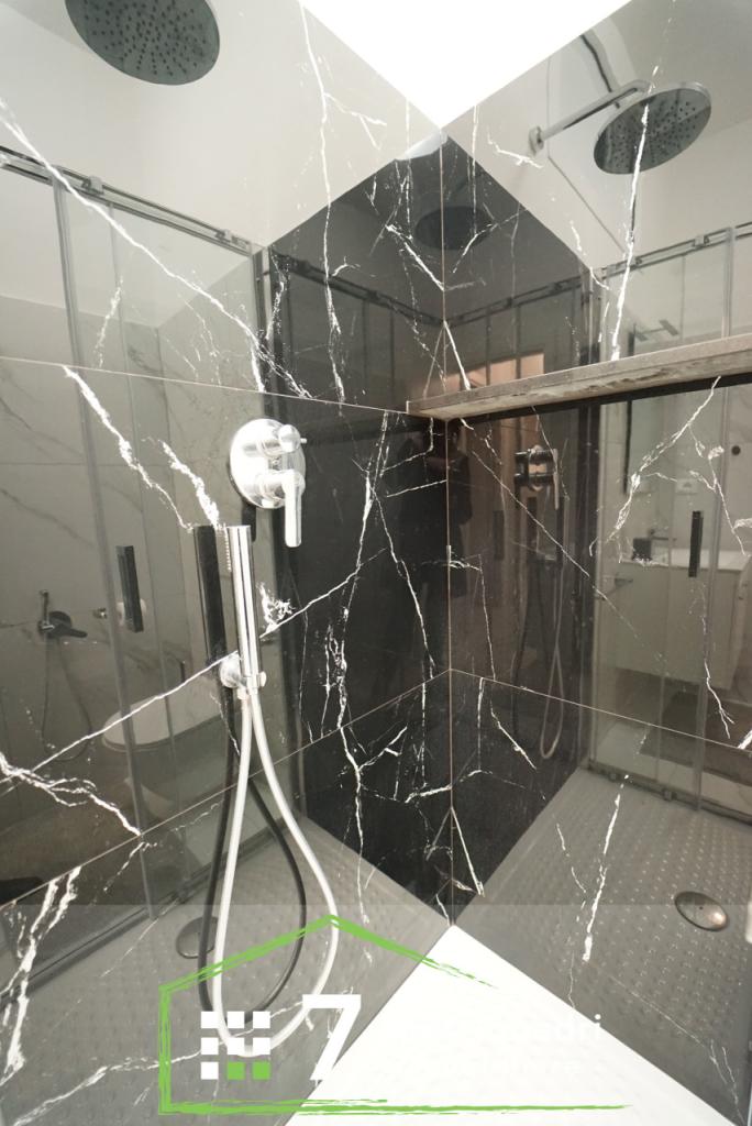bagno rifinito in marmo con box doccia,