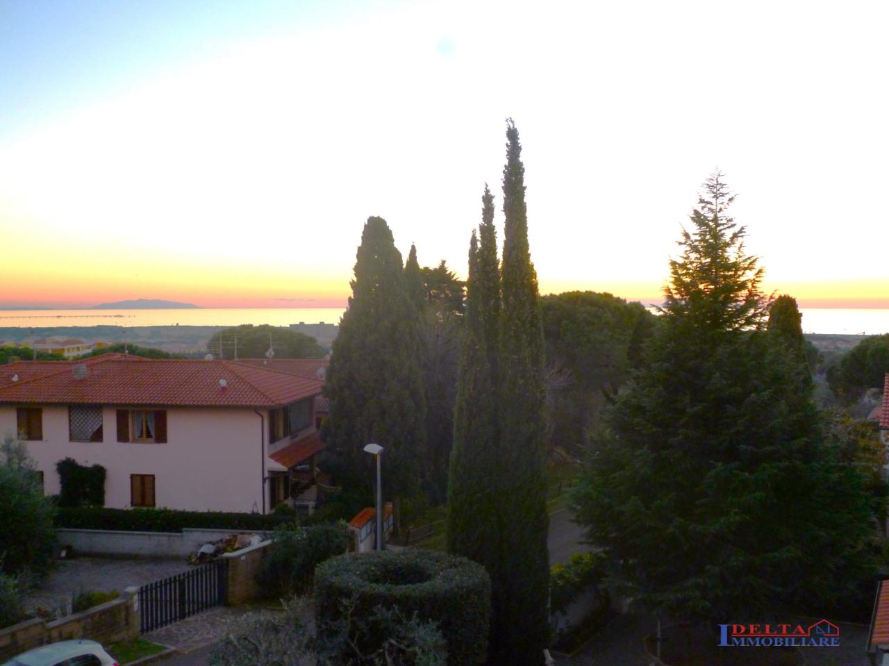 Rosignano Solvay - in zona residenziale e panoramica, villetta terratetto libera su tre lati, con finiture di pregio. Composizione: piano terra rialzato ampio soggiorno con camino, cucina, bagno; scala di collegamento al piano primo composto da tre camere e bagno principale. Terrazze con stupenda vista mare! Al piano seminterrato taverna e garage. Giardino circostante la villetta di circa 450mq. Termoautonoma a metano e pannelli solari. La villetta è molto luminosa grazie alle grandi finestre panoramiche.Possibilità di ampliamento. Rif G0717 - Maggiori Dettagli: vista mare, terrazza abitabile, Giardino, garage, Box auto, Camino, Taverna