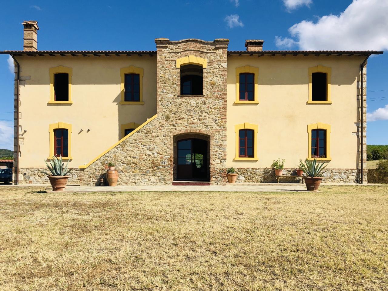 Ai piedi del caratteristico paese di Giuncarico in località Il Lupo nel Comune di Gavorrano a soli 15 min. dal bellissimo mare di Castiglione della Pescaia e dalla città di Grosseto vendesi antico casale di fine ´800 in stile patrizio completamente e finemente ristrutturato, circondato da ordinati vigneti. Il fabbricato principale è formato da un casale di circa mq. 550 distribuito su due livelli e composto al piano terra da locale deposito/lavanderia con accesso autonomo dalla corte, locali soggiorno-pranzo, camera, bagno finestrato e disimpegno con accesso agli attigui locali magazzino facenti funzione salone, disimpegno, camera matrimoniale, garage e bagno finestrato; al piano primo con accesso per tramite scala esterna rivestita in travertino e portico/ballatoio d´ingresso è composto da bellissimo salone pranzo doppio con ampie luci e finestre e dotato di imponente camino, cucina padronale, studio/salotto, bagno finestrato, due camere di cui una dotata di camino con soppalco, bagno e cabina armadio. Esternamente la proprietà si completa con due annessi deposito di totali mq.77 e facenti funzione area living con cucinotto, camera e bagno, uno dei due annessi e l´altro facente funzione salotto con studio e si interpone fra i due una confortevole veranda di mq. 25. I suddetti fabbricati insistono su un´appezzamento recintato di circa mq. 10.300 con accesso per tramite cancello automatico a battente e telecomandato, di cui mq. 4.960 di seminativo su cui insistono circa 80 piante di olivo ed il rimanente destinato a giardino e corte esclusiva. Tutti gli ambienti sono stati ristrutturati e curati nei minimi particolari, confortevoli e dotati di lavanderia/locale termico, cisterna di 3000 litri per la raccolta delle acque pluviali, due caldaie a gpl, fossa Imhoff, illuminazione esterna, allarme anti-intrusione, TV satellitare, Wi-Fi, allacciamento all´acquedotto con autoclave da 1500 litri. I meravigliosi scorci sulla campagna circostante ed i paesi limitrofi ne fanno uno dei luoghi più incantevoli della maremma. - SC7618192