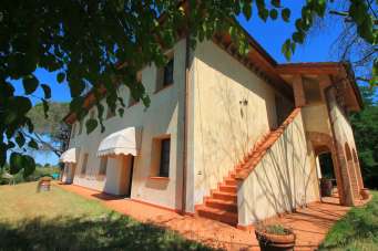 In bellissima zona collinare con meravigliosa vista sulla vallata, proprietà composta da 2 Casali con piscina, accessori e terreno circostante. CASA PADRONALE (480 mq + 35 mq di sottotetto + 32 mq di terrazze e logge coperte) E´ l´edificio più grande del podere, ristrutturato nel 2005 appositamente per ospitare 4 appartamenti adibiti ad uso turistico ricettivo. Piano terra: 2 appartamenti da 120 mq ciascuno, con 3 camere e 2 bagni oltre ad un salone con cucina-pranzo-soggiorno di circa 50 mq. Primo piano: 2 appartamenti di 140 mq ciascuno, con 4 camere e 3 bagni, salone con cucina-pranzo-soggiorno dal quale si accede alla terrazza coperta panoramica esclusiva. Ogni appartamento è dotato di cucina completa di elettrodomestici, tv satellitare, camino, riscaldamento, predisposizione al condizionatore, allarme. Arredamento accogliente caratteristico della colonica toscana ma con i comfort moderni. CASA ROSSA (190 mq + 20 mq loggia coperta) Appartamento adibito ad uso dei proprietari al primo piano, con salone, 2 camere, un bagno; al piano terra questo edificio ospita anche la reception, inserita in una ex-stalla appositamente restaurata. PISCINA (14x6m + 50mq di locali tecnici e vani depositi) E´ inserita perfettamente nella morfologia del terreno collinare, attraverso una terrazza si affaccia su un panorama incontaminato a vincolo paesaggistico dell´alta Val d´Era. Per metà della lunghezza, la profondità dell´acqua è di circa 1m, per scendere fino a 2,40m. Piscina trattata a cloro, con scaletta e trampolino. Area coperta di 90 mq, con gazebi e tensostrutture per eventi e cerimonie. Casali, piscina, oliveti e terrazze sono immersi in 20.000 mq di parco completamente recintato e dominano il territorio incantevole delle colline toscane. L´ubicazione della proprietà consente di raggiungere facilmente le principali città d´arte, il mare ed i borghi tipici della campagna toscana, a 30 minuti dall´aeroporto internazionale di Pisa. La struttura inoltre comprende: forno a legna, barbecue, tavoli, gazebo, cancello automatizzato, telefono ed Internet ADSL, deposito gas Gpl interrato, acqua dell´acquedotto trattata con addolcitore, percolatore per trattamento acque reflue, cisterne interrate per recupero acque piovane per irrigazione, impianto di irrigazione ed impianto di illuminazione esterna, impianto di allarme perimetrale della proprietà. - SC9486071