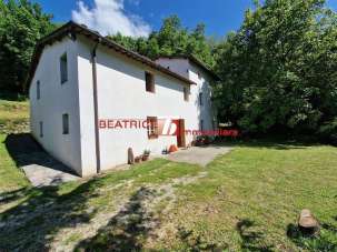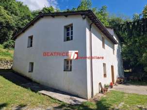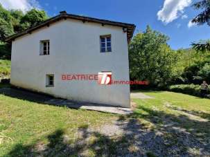 HILLS OF LUCCA. Placed on a hill surrounded by lush vegetation in a isolated area, with unpaved and disconnected road in the last kilometer, a farmhouse of 250 sq.m. mainly disposed on two levels, in addition to the third of less than the other two, restored in 2000 keeping its original materials, such as wooden beams and terracotta ceiling tiles and the antique terracotta floors. It consists of an entrance hall, a living room with a fire place, a kitchen and dining room with fire place, a windowed laundry and storage room (possibility of a bathroom); on the first floor, four bedrooms (one very large) and a bathroom; on the second floor, a large bedroom and a bathroom. Completed of a storage room and a boiler room on the ground floor of the house with external access , an oven, a hut of 85 sq.m. and and about 23,000 sq.m. of land mostly wooded and steep. Energy class G. Ipe 280 kWh/sq.m. per year. The address written in the ad is not real but indicative of the area.