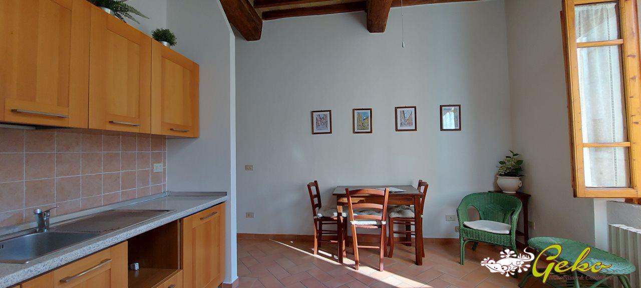 Una perla nel cuore del borgo medievale di San Gimignano! Questo appartamento di 62 mq al secondo piano , completamente ristrutturato e arredato , è la soluzione perfetta per chi desidera vivere l´ atmosfera del centro storico . \nSituato al secondo piano di una piccola palazzina con spese di gestione minime, l´ immobile vanta un´ ampia e luminosa zona cucina/soggiorno con una vista mozzafiato sulle bellezze del borgo, una camera da letto matrimoniale e un bagno con doccia. L´ arredamento ed i tipici soffitti a travi, donano un´ atmosfera calda ed accogliente. \nPerfetto per chi desidera una casa pronta da abitare subito oppure come seconda residenza per una vacanza rilassante o come investimento per affitti turistici.\n \nL´ appartamento è situato in una zona tranquilla del centro storico, a pochi passi da tutti i servizi e dalle principali attrazioni storiche della Toscana. Non perdere l´occasione di vivere in un angolo di storia e fascino antico, contattaci per una visita di questo meraviglioso immobile .\n\nPer maggiori informazioni non esitare a contattare :\n\nGEKO IMMOBILIARE E CONDOMINI SNC\[email protected] - www.gekoimmobiliare.com\nCell. 331 5805031 - 331 2222793 - 0577891135\n - Maggiori Dettagli: Porta blindata, Cucina Abitabile