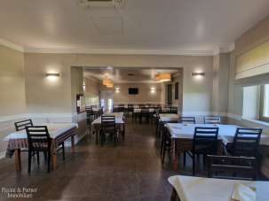 La struttura principale, in cemento armato e muratura, si sviluppa su due livelli di circa 220 mq ciascuno. Il piano inferiore è adibito a magazzino, locali tecnici, ecc. mentre il piano superiore ospita la cucina, 3 sale distinte tutte dotate di aria condizionata e una nuova parte in legno e vetrate di circa 120 mq per un totale di circa 350 coperti, il bancone con la zona cassa e l’area beverage.