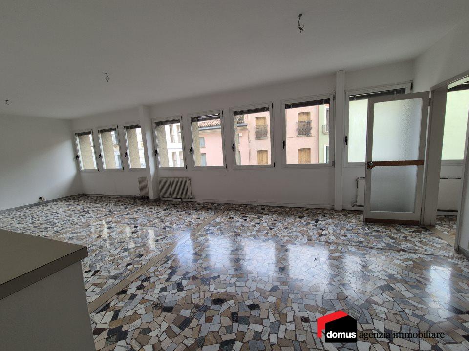 Thiene centro: ampio UFFICIO di buona metratura interna (100 mq) composto da ingresso, ampio locale di ben 45 mq dotato di una luminosità davvero insolita, ripostiglio, stanza utilizzata come archivio, due stanze ad uso ufficio e servizio. Posto auto coperto.\nPossibilità di effettuare un cambio di destinazione d´uso ottenendo così un ampio appartamento tricamere.\nBuono stato dell´edificio in generale, ma al suo interno l´appartamento necessita di essere rimodernato.\nPosto auto abbinato parzialmente coperto.\n\nQuattro buoni motivi per acquistare questo immobile:\n1. Posizione centralissima\n2. Ampia metratura interna\n3. Contesto ben tenuto\n4. Posto auto
