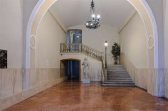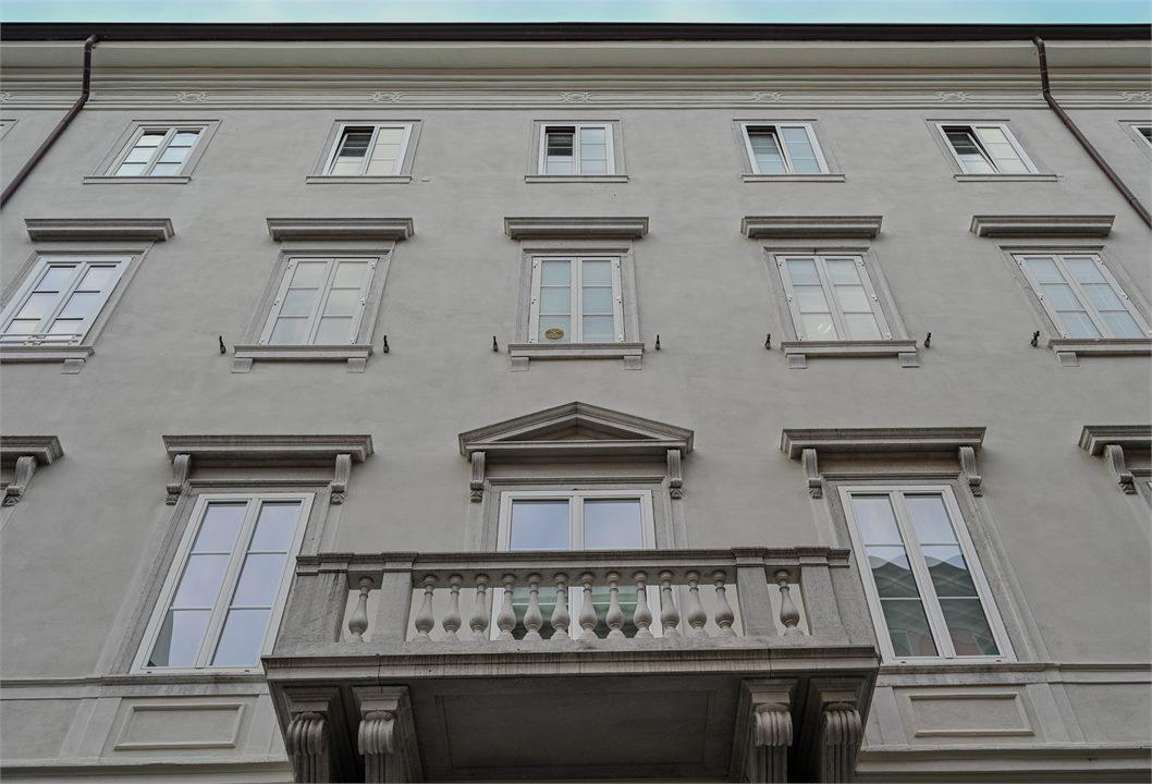 Nelle immediate vicinanze delle rive di Trieste, si propone in vendita un trilocale sito al secondo piano di un prestigioso stabile del 1800 privo di barriere architettoniche. L´immobile ha la particolarità di avere due soffitti affrescati protetti dalle Belle Arti. \nL´appartamento si sviluppa su 75 metri quadri e attualmente si compone di: ingresso, cucina abitabile e soggiorno che affacciano su Via Argento da cui si può godere di un piacevole scorcio mare, una camera da letto, una stanza guardaroba e un bagno completo e finestrato. La struttura dell´immobile offre diverse possibilità di distribuzione interna, tra le quali quella di realizzare una seconda camera da letto. \nL´appartamento si adatta sia come abitazione principale sia come uso investimento, data la posizione molto richiesta. \nL´immobile non necessita di grossi interventi di ristrutturazione ed è immediatamente abitabile. Lo stabile è in perfette condizioni ed ha inoltre subito un lavoro di rifacimento delle facciate e del tetto nel 2023.\n