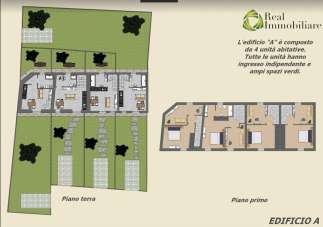 Un ottimo e curato capitolato con materiali di qualità e pregio è il valore aggiunto di queste proprietà. Alcuni aspetti del capitolato: cappotto esterno di 8cm, muri divisori fra le unità termoacustici, isolamento e coibentazione tetto in legno con pannelli di 14cm di spessore, intercapedine ventilato e barriera al vapore, caldai a condensazione, condizionatori a pompe di calore telecomandati, serramenti in PVC con vetrocamera 4/16/4, portone d´ingresso blindato. Le cifre s´intendono come da capitolato. Con possibilità di personalizzare gli appartamenti concordando le modifiche e scelte dei materiali con una cifra finale maggiorata. OTTIMO INVESTIMENTO PER ESSERE GODUTO O COME MESSA A REDDITO. Soluzione D 1 al piano terra ingresso indipendente soggiorno angolo cottura,camera matrimoniale,cameretta,bagno con doccia e finestra. Posto auto di 18 mq all´interno del giardino privato di circa 150 mq..
