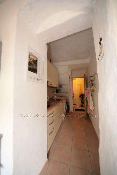 Nel borgo, comodo e ben raggiungibile, appartamento disposto su due piani: piano terra ingresso in cucinino, sala da pranzo, bagno completo con doccia, camera matrimoniale; piano 1° ampia camera con piccolo bagno di servizio, porzione di ballatoio e balcone, questo piano è comunicante con il piano sotto mediante la scala condominiale. Al piano semi interrato due cantine di cui una non delimitata da muro, terreno della superficie di circa 200 mq terrazzato. Richiede alcuni lavori. Riscaldamento assente. Cucina arredata.