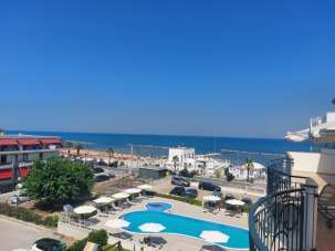 MARTINSICURO - in zona servita a circa 25 metri dal mare, appartamento di circa 60 mq coperti al terzo piano servito da ascensore. E´ composto da ingresso su soggiorno con angolo cottura, una camera matrimoniale, una camera singola, un bagno finestrato con doccia ed un terrazzo di circa 70 mq con vista mare. Completa la proprietà un garage al piano interrato di circa 15 mq. Vi è uno spazio verde condominiale recintato. L´immobile si presenta in ottime condizioni, ha infissi in legno con doppio vetro, portone blindato, aria condizionata, impianto di riscaldamento termoautonomo con elementi in alluminio, caldaia a condensazione, tende parasole, angolo lavanderia sul terrazzo. Arredamento incluso nel prezzo. Riferimento agenzia 6910 DiLeoImmobiliare