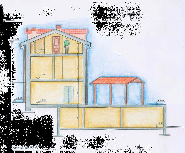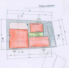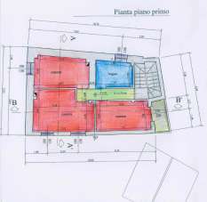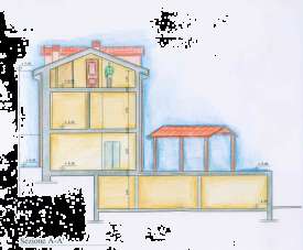 Piano primo di 70 mq: tre camere da letto e bagno; piano sottotetto di 70 mq. alto con abbaini suddiviso in tre vani.