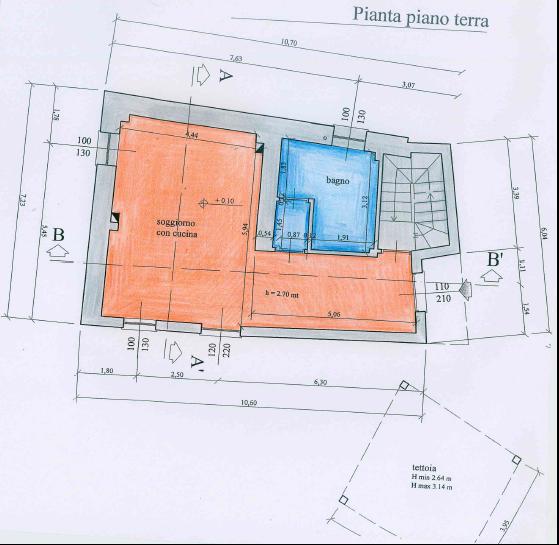 Composizione: piano terra di 70 mq: ampio ingresso su zona giorno, antibagno e bagno.