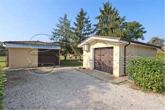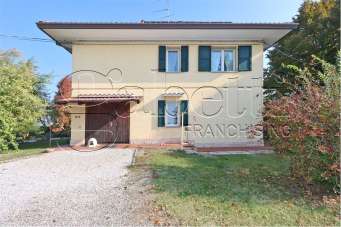 DOGATO VILLA UNIFAMILIARE immersa nella campagna ferrarese di ottime dimensioni composta da ingresso, tavernetta abitabile, bagno e garage; al piano rialzato soggiorno con camino e balcone, due camere da letto, bagno. Completa la proprietà due ampi locali ad uso cantina e garage, oltre a grazioso parco completamente piantumato ed accessoriato.