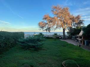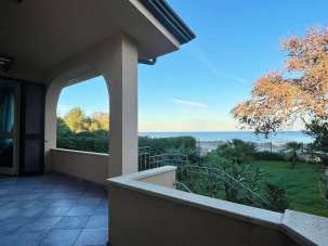 al piano seminterrato troviamo sala, cucina in muratura, 2 stanze e bagno; le scale interne a chiocciola portano al piano terra dove vi è il salotto dal quale si gode una vista panoramica, disimpegno, bagno e due camere di cui una con bagno interno. I due livelli hanno sia la scala interna che scala esterna che affaccia alla veranda e ampio giardino fronte spiaggia.