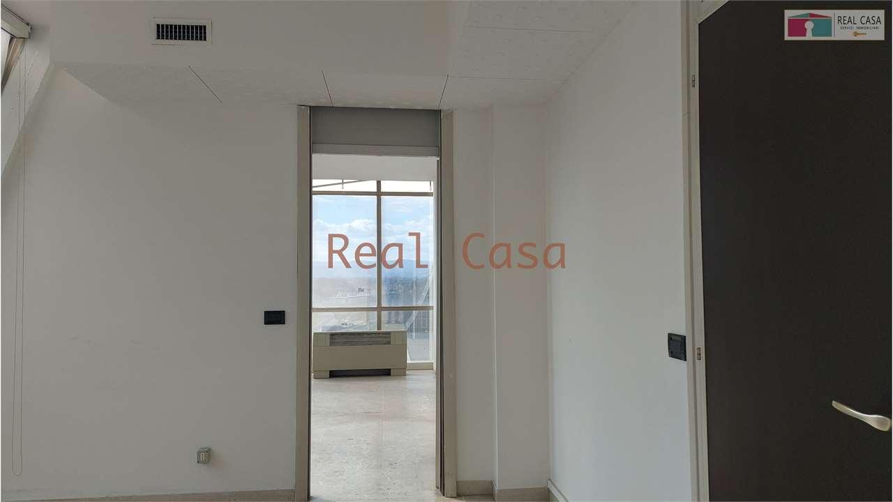 Piano PANORAMICO, due sole unità al livello, con tripla esposizione, splendide vetrate che danno molta luminosità ed una ottima vista est/sud/ovest, suddiviso da pareti in cartongesso con n.1 antibagno e bagno non finestrato. Impiantistica caldo/freddo DA CREARE ex-novo. Scala estremamente riservata e ben raggiungibile dalla Strada Giardini dotata di doppio ascensore.