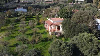 La casa, articolata al piano terra è composta da un ampia veranda di 28 mq, soggiorno con angolo cottura, due camere da letto, bagno ed un ulteriore vano di 13 mq realizzato di recente con copertura a falde in legno, pavimenti ed infissi nuovi, completa la proprietà un terreno pianeggiante di oltre 6000 mq, interamente recintato, piantumato con alberi d´ulivo, agrumi ed altri alberi da frutto; inoltre sono presenti due pozzi ed una generosa riserva idrica.