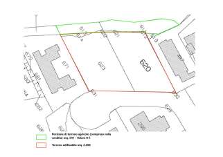 L´appezzamento suddiviso con due superficie edificabile di mq. 2.203 effettivi oltre a 541 mq. agricoli.
