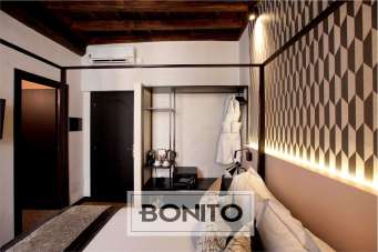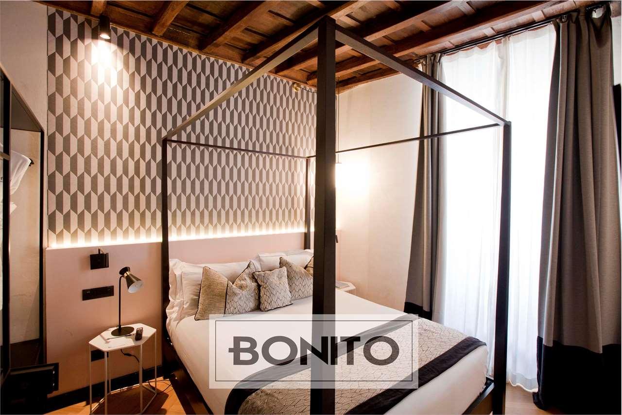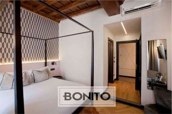 Nel cuore pulsante della Capitale, in via Margutta, una delle vie più affascinanti di Roma, proponiamo in vendita un elegante appartamento sito al secondo piano di un palazzo d´epoca e composto da ingresso, cinque ampie camere da letto tutte con bagno en suite, più una suite con camera da letto, sala e bagno. L´immobile, elegantemente ristrutturato e attualmente utilizzato come b&b, rappresenta un´opportunità irripetibile per chi desidera intraprendere un´attività ricettiva di alto livello attualmente è oggetto di un contratto di locazione con scadenza a giugno 2031, con canone annuo di euro 60.000, in una delle zone più ambite dai turisti e dagli appassionati di arte e cultura. Su un lungo corridoio a S con affacci sulla chiostrina interna sono disposte le 5 camere, tutte raffinate ed accoglienti e corredate di bagno en suite. Queste sono prospicienti via Margutta, in una dimensione di assoluta tranquillità. Ogni camera è arredata con stile moderno ed elegante, con ambienti spaziosi, luminosi e progettati con cura per garantire il massimo comfort. Le camere sono tutte climatizzate con fan coil per un soggiorno piacevole in ogni stagione. I bagni privati, corredati di doccia, sono stati realizzati con materiali di alta qualità e finiture moderne, il tutto arricchito da piastrelle in ceramica in contrasto con i colori tenui delle pareti che conferiscono un aspetto elegante e funzionale. Infine sono presenti due armadi a muro e un pratico ripostiglio, ideale per mantenere gli ambienti sempre ben organizzati. A completare la proprietà pavimentazione in moquette nel corridoio, parquet nelle camere e ceramica nei bagni, splendidi soffitti in legno a cassettoni con travi a vista, infissi in alluminio doppio vetro, illuminazione con applique di design a parete nel corridoio e porta blindata. Ci troviamo nel centro storico della città, in una zona famosa per la sua atmosfera unica e il suo legame con il mondo dell´arte e della cultura, ricca di gallerie d´arte e fotografiche, caffè d´epoca e botteghe artigiane, ma anche per il suo spirito bohémien che l´ha resa un rifugio per artisti, scrittori e intellettuali nel corso dei decenni. L´immobile è situato a pochi passi da piazza di Spagna e da piazza del Popolo, facilmente raggiungibile a piedi. Inoltre, vicino si trovano anche Villa Borghese e Trinità dei Monti. Via Margutta è ben collegata con i mezzi pubblici, in una posizione esclusiva che permette di immergersi nella bellezza e nella storia di Roma, ma al contempo lontano dal caos delle zone più turistiche.