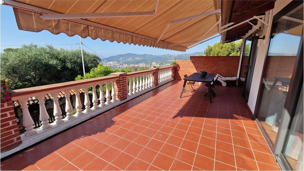 Ad impreziosire la proprietà una terrazza ed un splendido giardino curato dove rilassarsi godendo di una meravigliosa vista sul mare e sui monti.