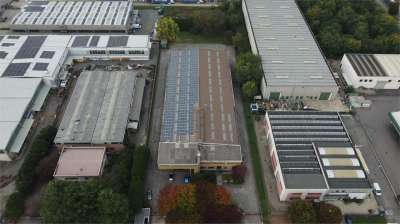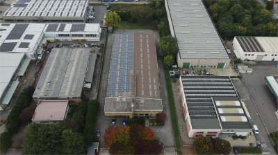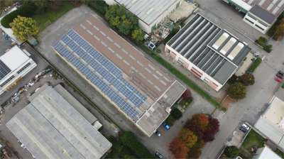 Al primo piano, gli uffici di 142 metri quadrati e la casa trilocale di 120 metri quadrati con riscaldamento autonomo offrono un confortevole spazio di lavoro e di vita. La proprietà dispone inoltre di un impianto di pannelli fotovoltaici da 100 kWh, che garantisce un notevole risparmio energetico.