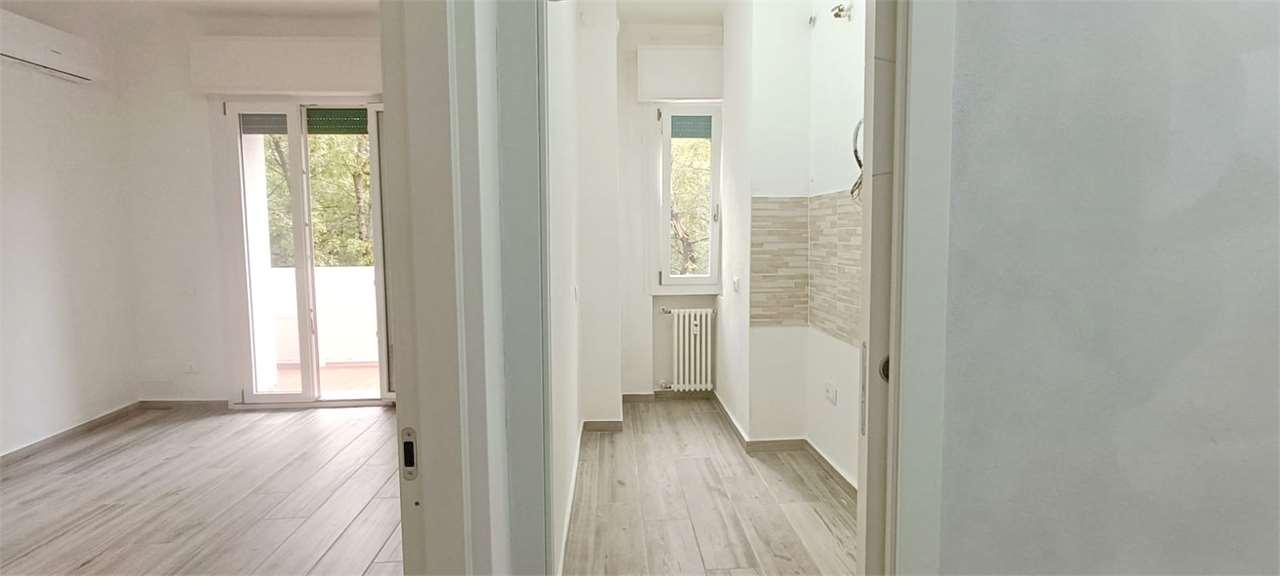 RG3003 Stazione dei treni - In zona comoda al centro storico, proponiamo appartamento completamente ristrutturato posto al 2° piano in condominio con ascensore, composto da: ingresso, soggiorno con balcone, cucina, camera matrimoniale e bagno con ampio box doccia. Completa la proprietà una cantina.