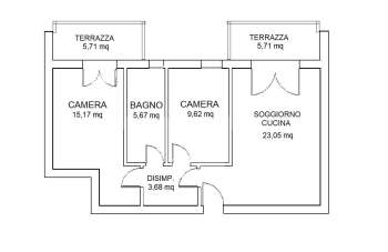 Il soggiorno pranzo ha una metratura ed una distribuzione degli spazi che permette diverse soluzioni di arredamento, passando poi al reparto notte troviamo due camere, un grande bagno finestrato con doccia ed un disimpegno dove poter arredare con un grande armadio a muro sempre utile in una casa.