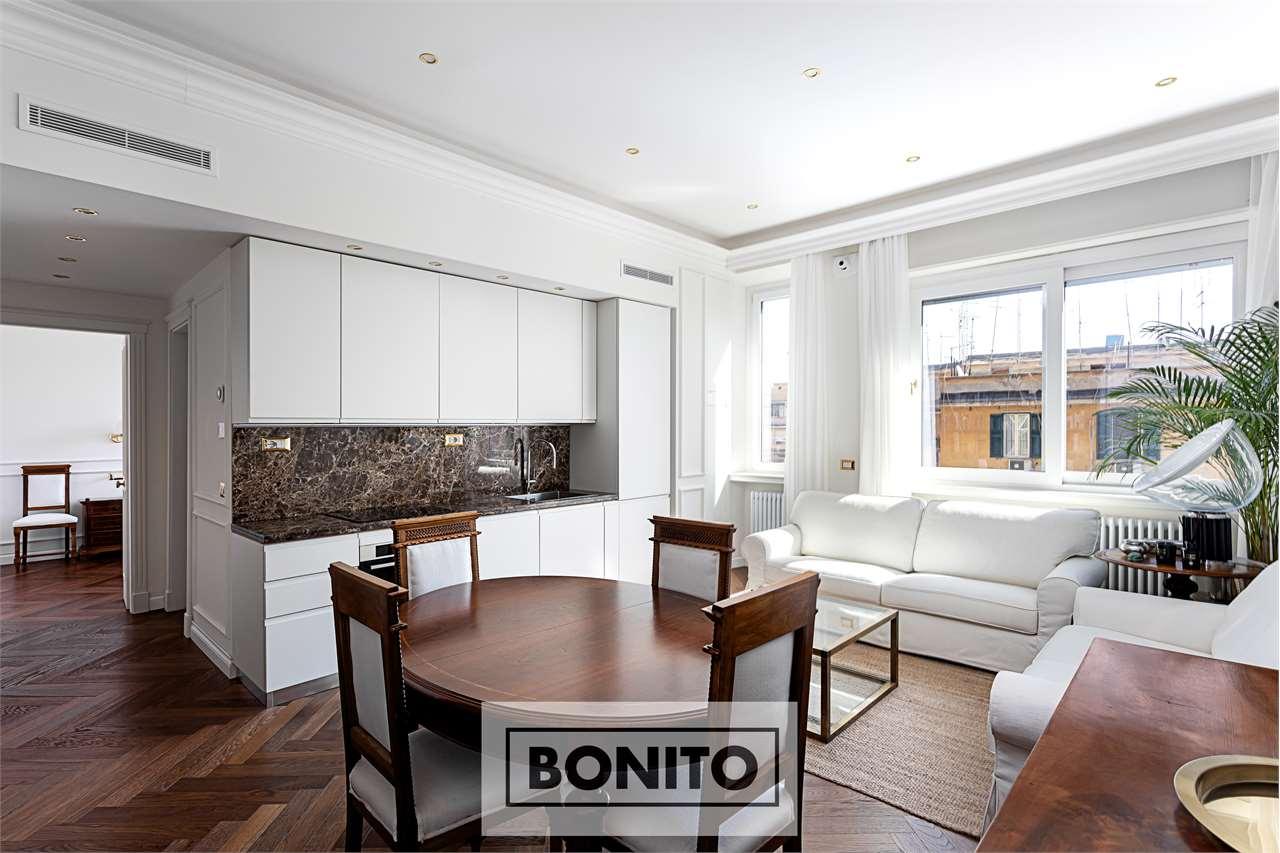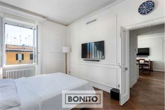 L´immobile, totalmente ristrutturato nel 2022, è composto da salone con angolo cottura, camera da letto e bagno e si raggiunge attraverso un elegante corpo scale in marmi policromi. L´accogliente ingresso dell´abitazione si apre sul luminosissimo salone con angolo cottura. La cucina è in stile moderno con un pregiato top in marmo; sulla sinistra si procede su un piccolo corridoio in cui troviamo un comodo armadio a muro su misura e il moderno bagno con doccia e sanitari sospesi decorato con marmo dai colori caldi. In fondo al corridoio si accede alla camera da letto, anch´essa assai luminosa e completa di armadio a muro su misura. Ad eccezione del bagno tutta la casa è pavimentata con parquet in rovere e presenta decorazioni a soffitto e sulle pareti con stucchi in gesso, frutto di una raffinata ristrutturazione che ha permesso la realizzazione di controsoffitti con faretti a led e nella camera con illuminazione indiretta policroma. Nel bagno c´è anche l´entrata di un soppalco che copre parte del corridoio. Gli affacci dell´appartamento sono tutti su un´ampia zona di cortili interni limitrofi. A completare la proprietà: porta blindata con spioncino digitale, infissi in pvc con doppio vetro a taglio termico e zanzariere, persiane in alluminio e serranda elettrica solo in salone, riscaldamento autonomo con radiatori gestiti da termostato e domotica, sistema di aria condizionata con pompa di calore canalizzata in tutte le stanze, videocitofono, porte in legno bianco su misura, piccolo ripostiglio e insonorizzazione sul soffitto e su alcune parti delle pareti del salone. Siamo in una delle zone più eleganti del quartiere, ricca di servizi al cittadino e di una fitta rete di servizio pubblico. Grazie alle bellissime zone verdi, ai cortili e a un´architettura ottimamente mantenuta nel corso del tempo, Prati garantisce uno stile autentico e un´ottima qualità della vita.