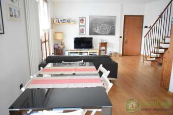 In minipalazzina composta da 5 unità abitative, con minime spese condominiali e riscaldamento autonomo. Unico nel suo genere per grado di finiture interne, disposizione e ampiezza dei locali (piano giorno 65 mq, piano notte 75 mq) nonché luminosità in quanto gode di tripla esposizione: ampio 5 locali disposto su 2 livelli con doppi servizi e terrazzi di 20 mq cad/uno. Mediante ampio ingresso, attrezzabile con armadio guardaroba, si accede alla zona giorno openspace gestita da soggiorno e cucina a vista (possibilità di renderla abitabile per metratura e punti aeroillumunanti soddisfacenti), nonché servizio finestrato dotato di vasca, ed inoltre camera al piano da poter gestire come locale hobby/ camera ospiti/ sala giochi ecc. La zona giorno è servita da terrazzo di 20 mq, in parte coperto, vivibile e corredato da tende da sole. Tramite scala in legno lineare, raggiungiamo la zona notte servita da 2 camere spaziose, di cui la matrimoniale dotata di ampia cabina armadio/ spogliatoio, nonchè di accesso a terrazzo / solarium di 20 mq. Inoltre studio, funzionale ripostiglio e servizio, anch´esso finestrato dotato di doccia.