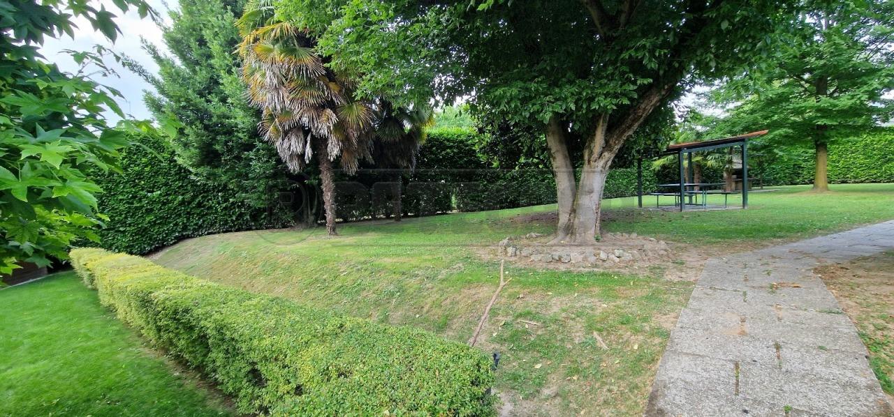 Camisano Vicentino, vendesi in piccolo recidence, recintato, al piano terra con giardino di circa 30 mq. ad uso esclusivo, appartamento bicamere, con cucina abitabile separata dal soggiorno, soggiorno doppi servizi, e due terrazzini, garage doppio di 36 mq. impianti autonomi aria condizionata. Ampio parco condominiale utilizzabile anche per feste.