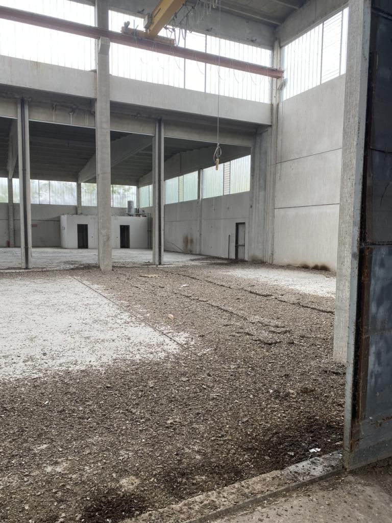 Capannone sinistro di 775 mq con altezza sotto trave di 6 metri, adatto per produzione, magazzino o deposito.