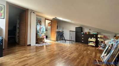 Dal soggiorno, una suggestiva scala a chiocciola conduce alla mansarda: un ambiente versatile che ospita un´ulteriore camera da letto, un ampio bagno e un altro vano perfetto per uno studio, un ufficio o un angolo dedicato alle proprie passioni.A completare la proprietà, un comodo garage al piano interrato. € 170.000