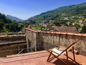 Rif. 21993- Dolceacqua. Vendesi bilocale di circa 40 mq nel centro storico del paese. Dai terrazzi si ha una magnifica vista sul paese e sulla vallata. L’appartamento si trova al terzo e quarto piano con accesso dal terrazzo principale di 24 mq, dotato di una cucina estiva. Un bel vano con soffitto a volta funge da soggiorno e zona pranzo con cucina a vista. Al piano superiore si trovano il bagno e la camera da letto, da cui si accede a un piccolo terrazzo con accesso al terrazzo sul tetto sovrastante.