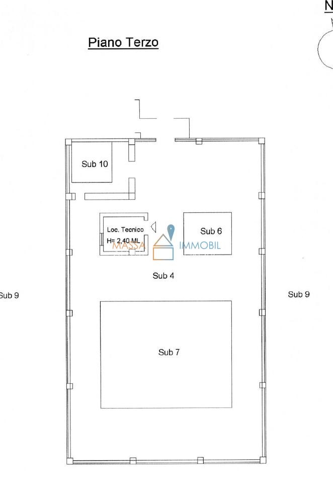 Tutto il Lotto, compreso i locali tecnici, è di 1.600 Mq. Sotto al Piazzale Sopra-Elevato Vi è un Garage/Deposito di 135 Mq Utili. Sopra il 3 Piano vi sono 3 Locali Deposito per un Totale di 110 Mq Utili.
