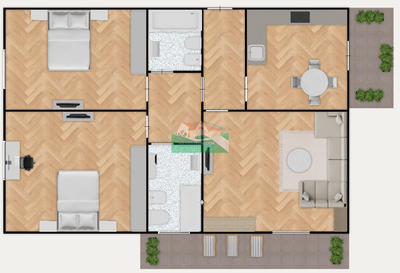 All´interno si compone di ingresso, cucina abitabile con balcone, ampia sala con ampio balcone, disimpegno notte,due bagni, due camere da letto matrimoniale e doppia, al piano superiore è disponibile una mansarda.