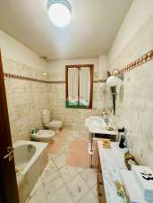 Al piano superiore, accessibile da scala interna, troviamo una camera matrimoniale (19,70 mq) con loggia, due camere doppie (entrambe di 12 mq) di cui una con accesso ad ulteriore balcone, due bagni finestrati uno con box doccia e uno con vasca.