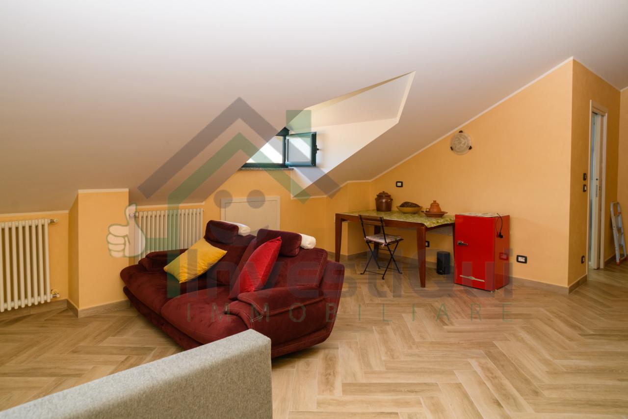L´immobile proposto è situato al secondo e ultimo piano ed è composto da Ingresso,Cucina Abitabile,Camera da Letto,Bagno oltre al Terrazzino dotato di tende estate/inverno, tramite scala interna si accede al piano superiore dove è presente open space con un secondo bagno. Si precisa che il piano mansardato è stato oggetto di pratica edilizia per il recupero del sottotetto ed è utilizzabile come meglio si desidera.