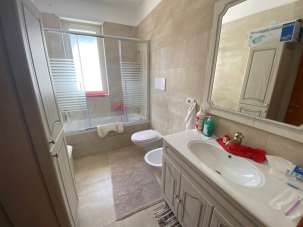 RIFINITURE: porta ingresso blindata, pavimento uniforme in gres porcellanato, infissi in vetrocamera, porte interne in legno classico a battente, condizionatori con pompa di calore, impianto di allarme, videocitofono, sanitari sospesi;Tapparelle elettriche;Inoltre l´immobile viene ceduto parzialmente arredato;
