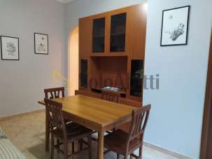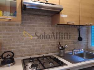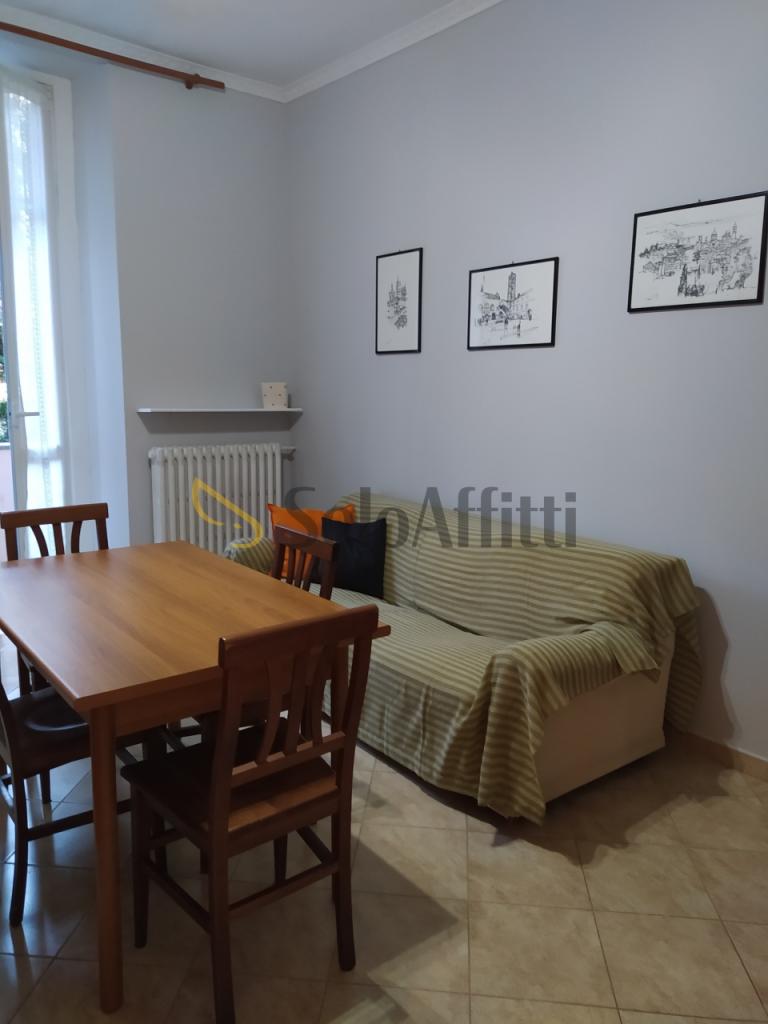 Entrando si accede a un piccolo disimpegno: sulla sinistra si trova il bagno con doccia, mentre proseguendo si apre il soggiorno arredato con tavolo e divano-letto, collegato al cucinotto separato. La zona notte comprende una camera con letto a una piazza e mezza e una seconda camera con due letti singoli e due scrivanie, ideale per studenti o lavoratori.