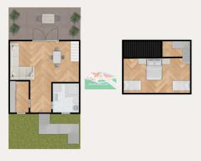 All´interno si compone da ingresso angolo cottura, ampio soggiorno dotato di terrazza, bagno finestrato con box doccia, ampio soppalco adibito a zona notte con 4 letti.