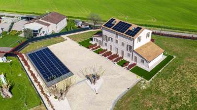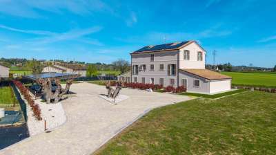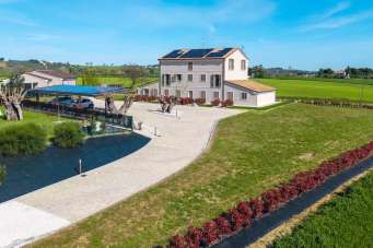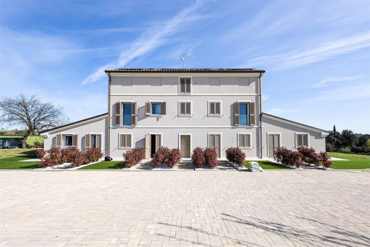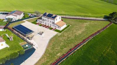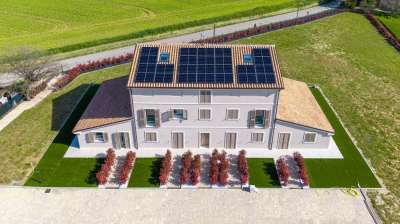 Prestigiosa tenuta di campagna ecosostenibile a Monsano vicino alla costa adriatica.La posizioneQuesta elegante residenza di campagna di nuova costruzione si trova sulle dolci colline che circondano Monsano, a breve distanza da tutti i servizi essenziali e dalle rinomate mete turistiche della costa marchigiana. Monsano occupa una posizione strategica nel cuore delle Marche, offrendo un accesso rapido e facile alle sue attrazioni culturali, naturali e gastronomiche. La proprietà gode sia della tranquillità della campagna che della comodità di essere vicina alle principali arterie stradali e alla costa adriatica. In pochi minuti è possibile raggiungere Jesi, una vivace cittadina storica, o le spiagge di Senigallia, celebri per la loro sabbia fine e le acque cristalline. La zona circostante offre cantine vinicole, uliveti, borghi medievali e sentieri per passeggiate a piedi o in bicicletta: un autentico e sereno stile di vita italiano immerso nella natura.La proprietàCompletata nel 2024, questa prestigiosa dimora di campagna rappresenta un´eccezionale combinazione di design, innovazione e comfort. Il progetto nasce dalla demolizione e ricostruzione di un casale tradizionale, utilizzando le più avanzate tecnologie strutturali, garantendo la massima sicurezza sismica e un´efficienza energetica di altissimo livello.L´edificio principale si estende su tre piani per un totale di 745 m² di superficie commerciale e 490 m² di superficie abitabile. Ospita otto appartamenti indipendenti, ciascuno accuratamente progettato per garantire comfort, privacy e autonomia. L´architettura preserva il fascino rurale della campagna marchigiana, integrando materiali sostenibili e sistemi energetici all´avanguardia che portano i consumi prossimi allo zero.La proprietà si estende su 5.000 m² di terreno privato, tra cui un ampio giardino paesaggistico condiviso dagli appartamenti. L´area esterna è stata predisposta per la realizzazione di una piscina condominiale, personalizzabile in dimensioni e forma in base alle esigenze future.Unità disponibiliIl residence comprende otto appartamenti individuali, suddivisi tra monolocali e bilocali. Ogni appartamento dispone di angolo cottura attrezzato, una confortevole zona giorno e un bagno privato concepito come un centro benessere personale, completo di sauna o bagno turco e doccia idromassaggio. Ogni camera da letto ospita un letto matrimoniale o due letti singoli e tutte le unità godono di un´eccellente luce naturale e di access