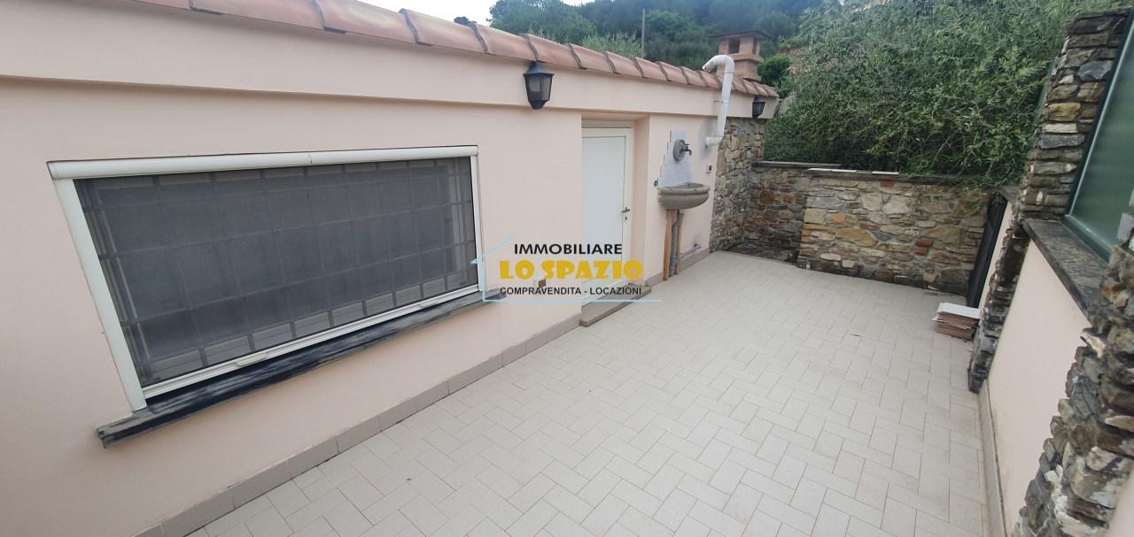 LO SPAZIO IMMOBILIARE vi propone in vendita, in località Mezzacqua, a circa 800 metri dal mare, villetta a schiera in pietra libera su tre lati, con accesso indipendente e ampio giardino circostante, immersa nel verde e nella tranquillità di un piccolo borgo. La proprietà è disposta su tre livelli. Al piano terra troviamo un ingresso, soggiorno con accesso diretto al giardino, cucinotto con porta finestra, camera matrimoniale e bagno finestrato. Una scala esterna conduce al piano sottostante nel quale troviamo un’ampia taverna con servizio e ripostiglio. Completano la proprietà una soffitta, un terrazzo/solarium e un posto auto scoperto ad uso esclusivo. In ottimo stato, ben tenuta, riscaldamento autonomo, infissi con zanzariere ed inferriate, irrigazione automatica delle aree verdi, basse spese di gestione. Siamo a disposizione per informazioni e/o appuntamenti, presso la nostra Agenzia, sita in Andora (SV), Via Aurelia 74, recapito telefonico 0182.85161 e/o indirizzo e-mail: [email protected]. Siamo aperti tutti i giorni tranne il giovedi´ e la domenica pomeriggio. Potete visionare il nostro sito: www.immobiliarelospazio.com.