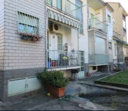 Al piano rialzato (primo fuori terra), appartamento composto da ingresso, soggiorno-pranzo, due camere, disimpegno, bagno, scala interna collegante con il piano seminterrato e balcone; Al piano seminterrato, tre locali a uso cantina adiacenti e vano centrale termica.