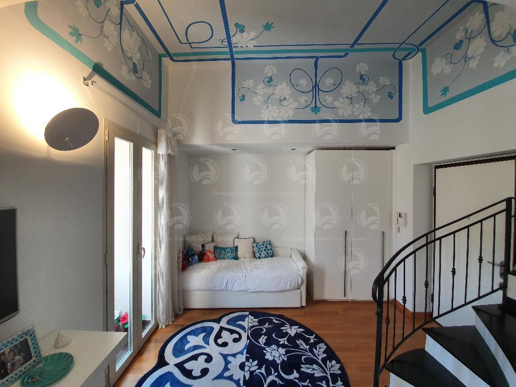 Alassio, a 50 metri dal Molo, in palazzina storica del 1600 completamente ristrutturata anche nelle parti comuni, proponiamo caratteristico alloggio con soffitti a volta affrescati. L´appartamento è composto da ingresso, luminosissimo soggiorno con angolo cottura, balcone con vista aperta, bagno, e al piano superiore ampia camera da letto.