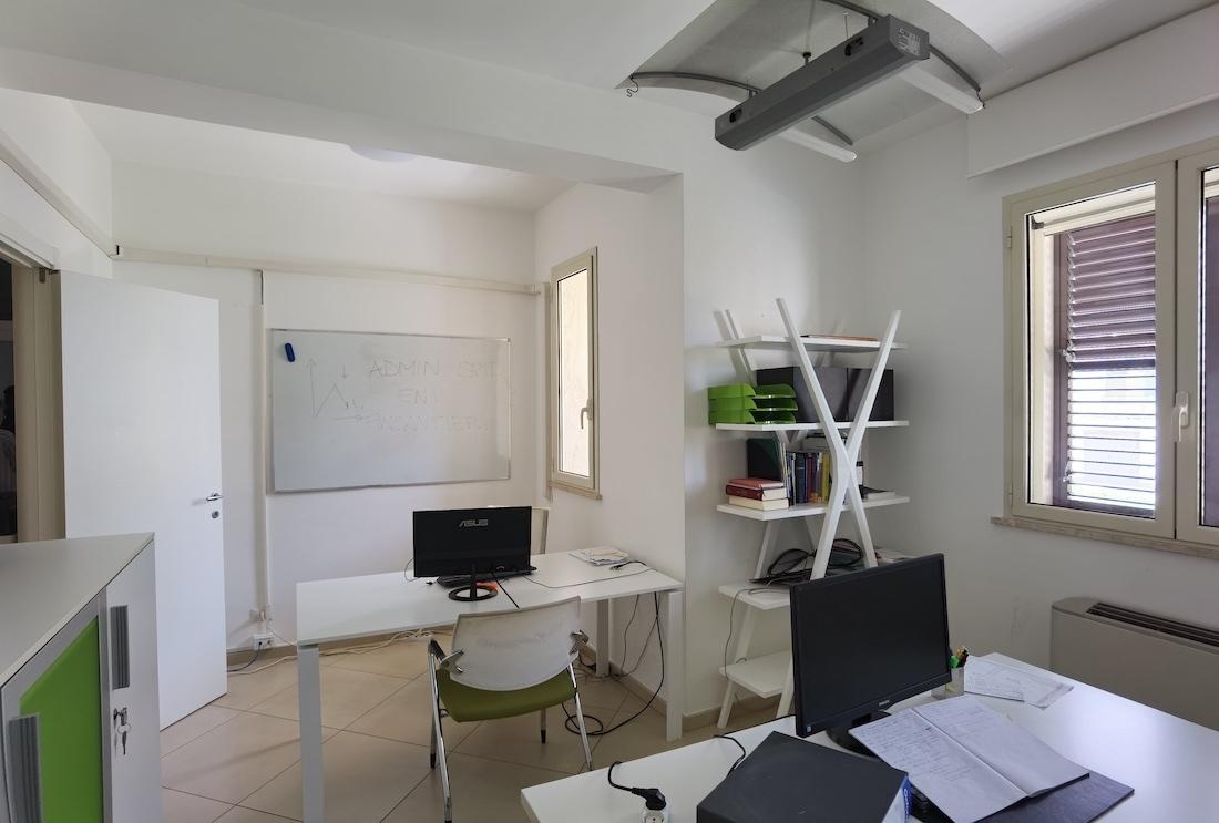 L´appartamento attualmente adibito ad uso ufficio è così composto: ingresso su ampio salone, cucina, n. 3 camere, bagno e ripostiglio.