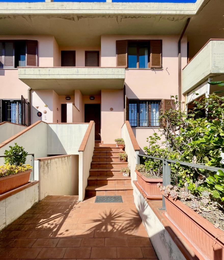 Grosseto via Pian D´Alma zona Tiro a Segno, in graziosa schiera vendesi appartamento con ingresso indipendente di vani 6 mq.180 e composto; al piano terra da ingresso esclusivo con corte e pianerottolo esterno per totali mq.13; al piano primo da ampio soggiorno con accesso a terrazza abitabile di mq.14, cucina pranzo collegata a terrazza con servizi di mq.10, disimpegno, una camera matrimoniale, bagno con finestra e ripostiglio; al piano secondo ampio locale sottotetto facente funzione zona living con camino e predisposizione cucina, vano facente funzione camera, bagno e terrazza a tasca di mq.5; al piano seminterrato e collegato con scala esterna, locale cantina finestrata di mq.21 con locale autoclave personale ed autorimessa comunicante di mq.21 con basculante ad apertura motorizzata. Ottima esposizione principale. Parzialmente da ristrutturare. Libero! Classe Energetica: G - IPE: 165.40kWh/mq anno