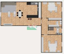 INGRESSO CON OPEN SPACE CON SALA E CUCINA A VISTA, DISIMPEGNO NOTTE, CAMERA DA LETTO MATRIMONIALE, CAMERA DOPPIA, BAGNO FINESTRATO CON DOCCIA, RIPOSTIGLIO AD USO LAVANDERIA.