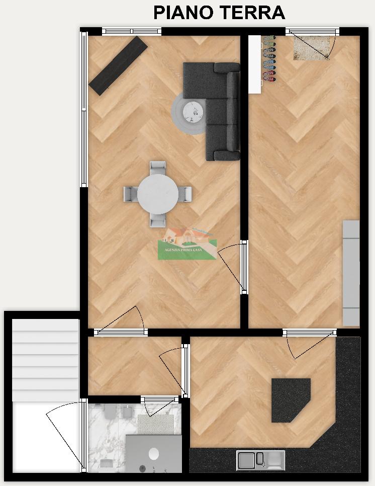 Appartamento da ristrutturare su due livelli piano terra e primo, composto da ingresso, ampia sala con angolo cottura, bagno con box doccia; al primo piano disimpegno notte due camere da letto matrimoniali, bagno finestrato, ampia terrazza.
