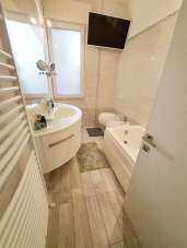 La soluzione si apre su una zona giorno ampia e luminosa, con salotto e cucina separate ma allo stesso tempo collegate da ´´passavivande´´ . La zona notte comprende due camere da letto (una matrimoniale e una doppia), due bagni finestrati – uno con doccia, l’altro con vasca. Sono presenti, inoltre, un´utile cabina armadio e un pratico disbrigo adibito a lavanderia.